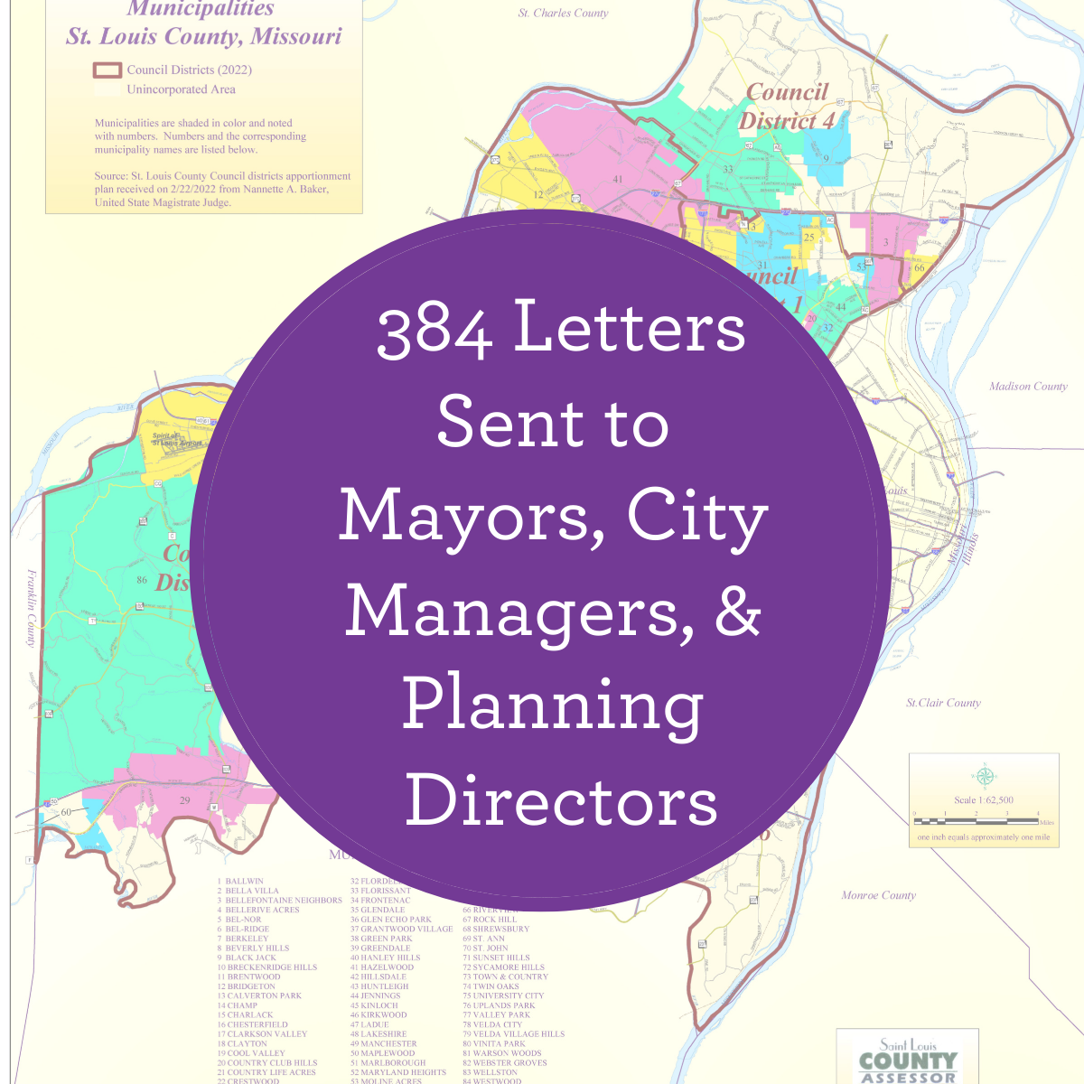 Normandy • Spanish Lake • Florissant • Affton • Wildwood • Kinloch • Lemay • Glasgow Village • Maplewood • Bellefontaine Neighbors • Webster Groves • Oakville • University City • Kirkwood • Pagedale • Old Jamestown • Bella Villa • Clayton • Town & Country • Hazelwood • Valley Park • Manchester • Ferguson • Saint Ann • Vinita Park • Berkeley •
