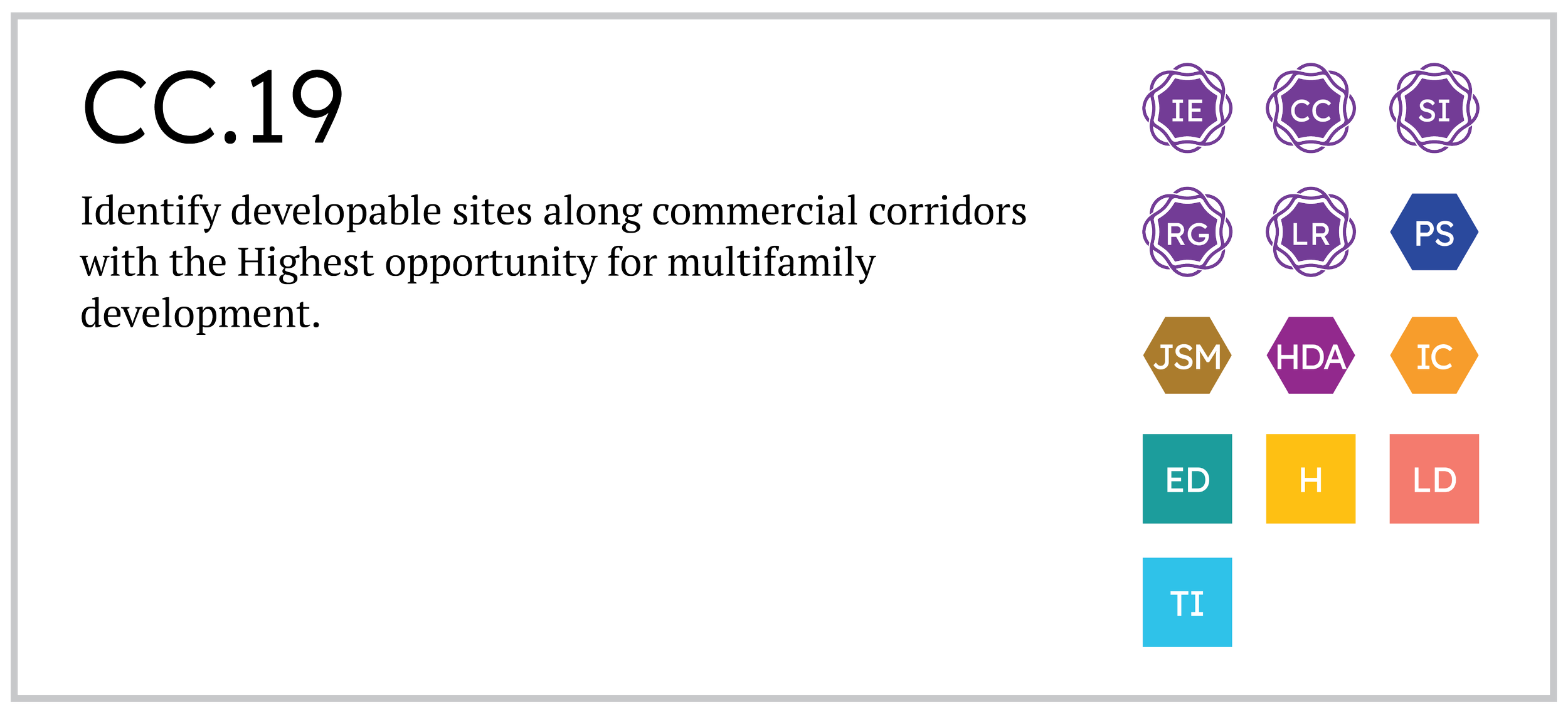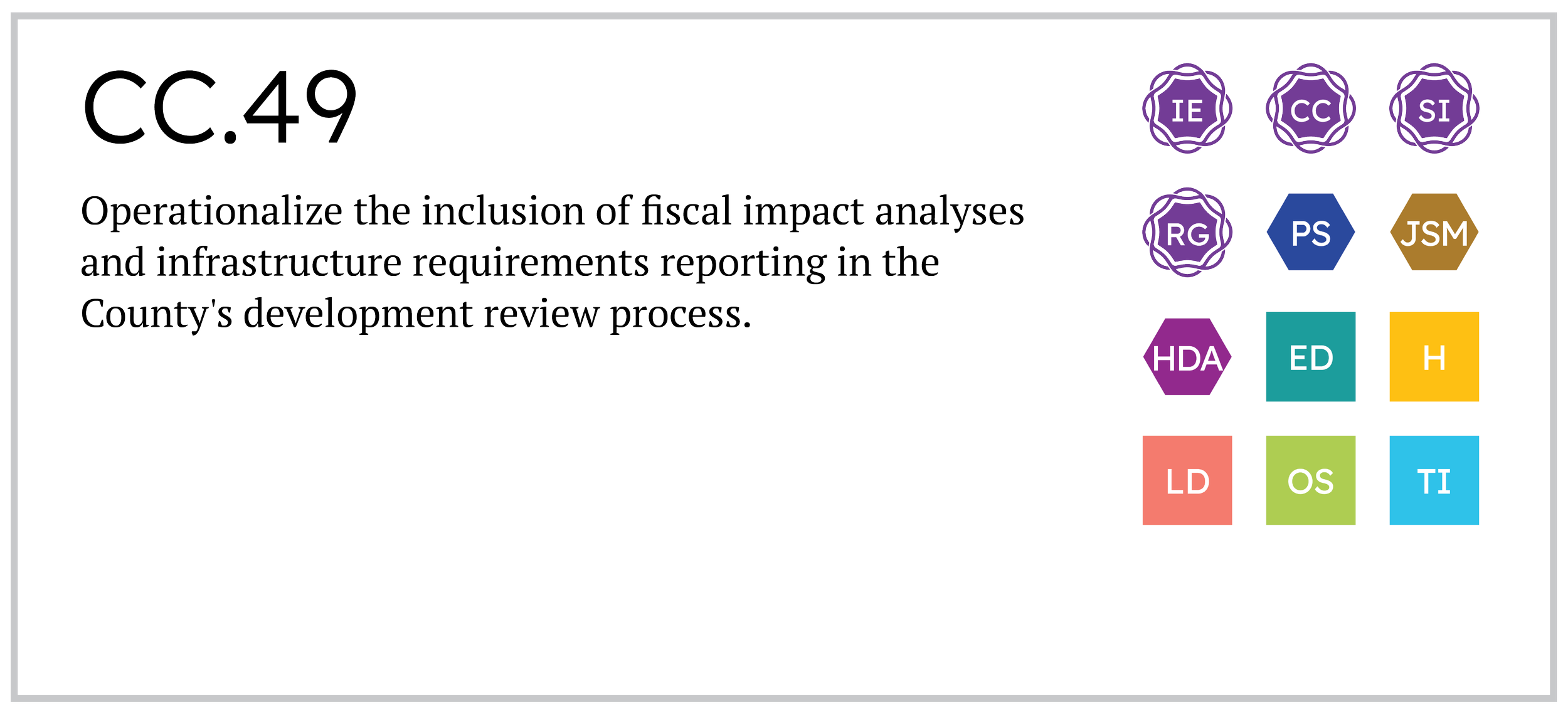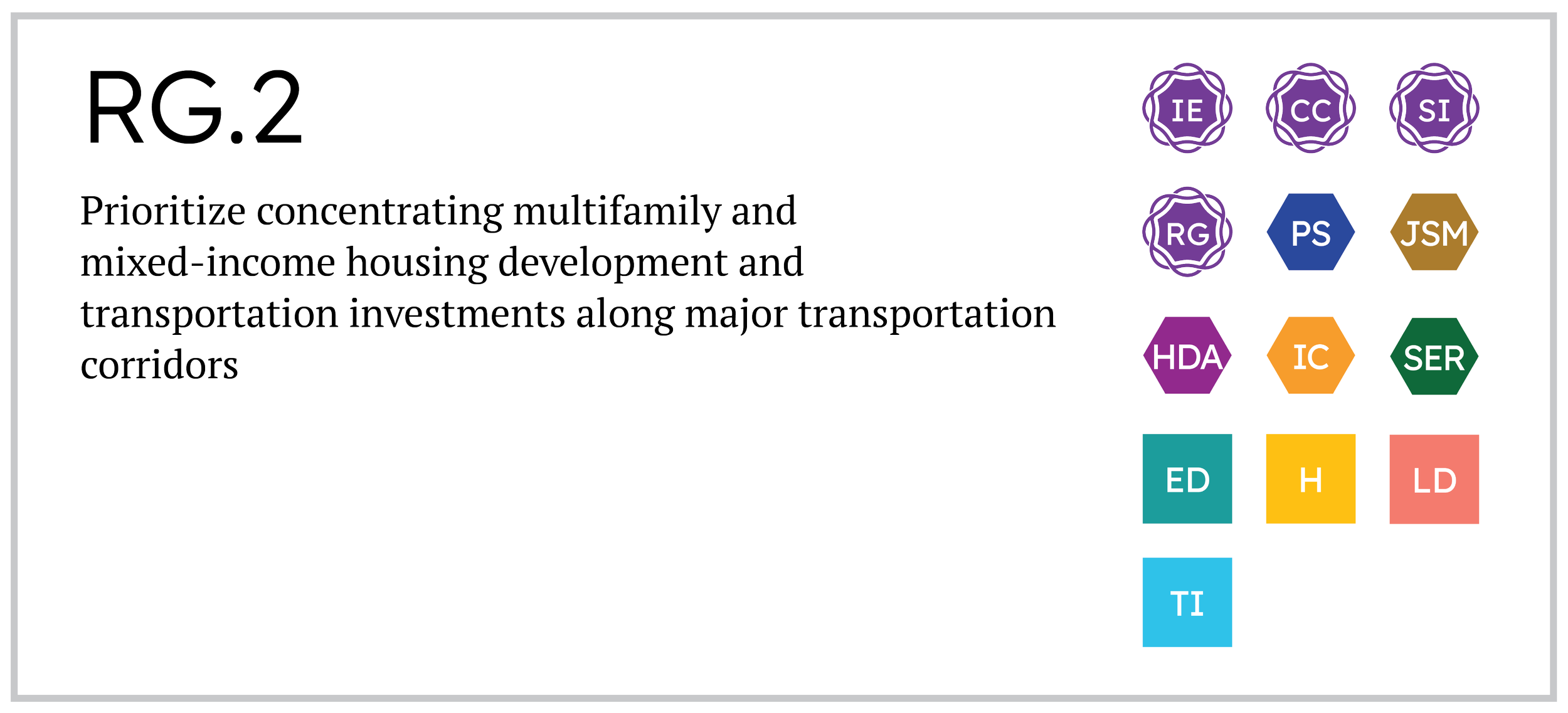 Below are the most transformative recommendations that address all of the five key issues. The cards show how intertwined the various policy buckets, key issues, and planning topics are. These are the first policies that the County is looking to to inform the prioritization and allocation of resources.
