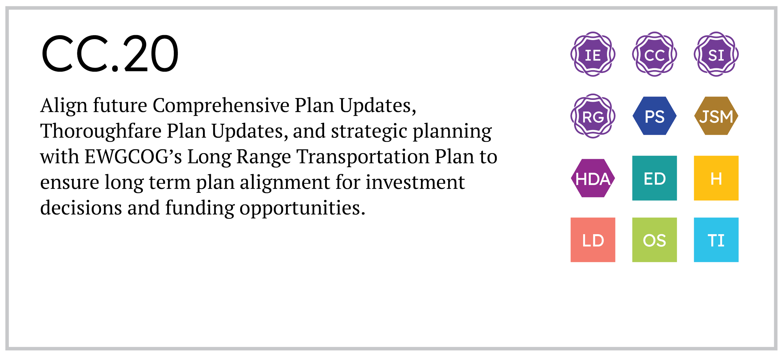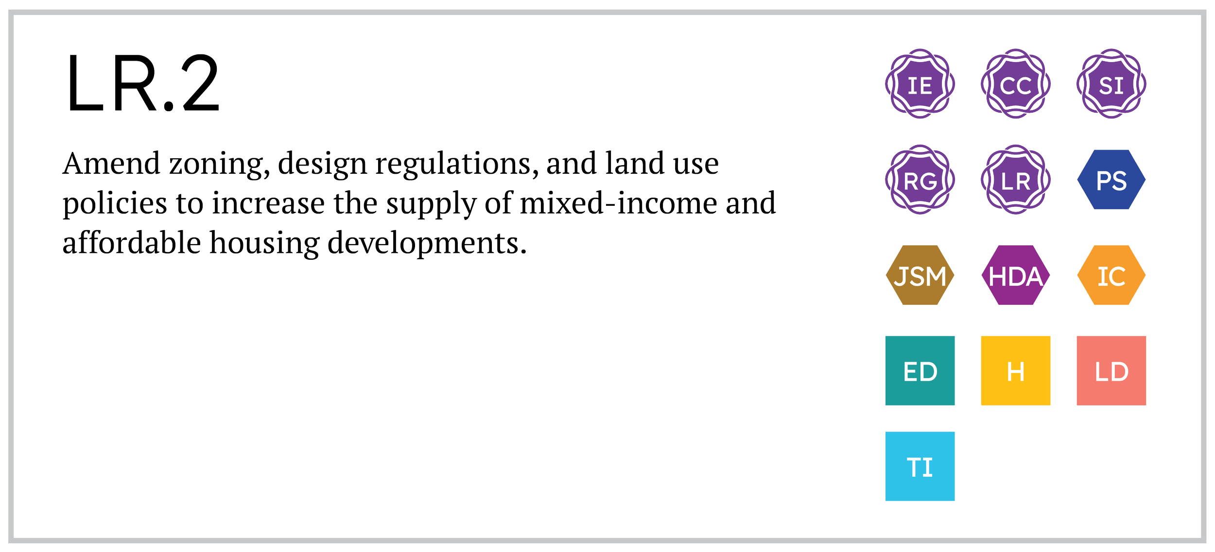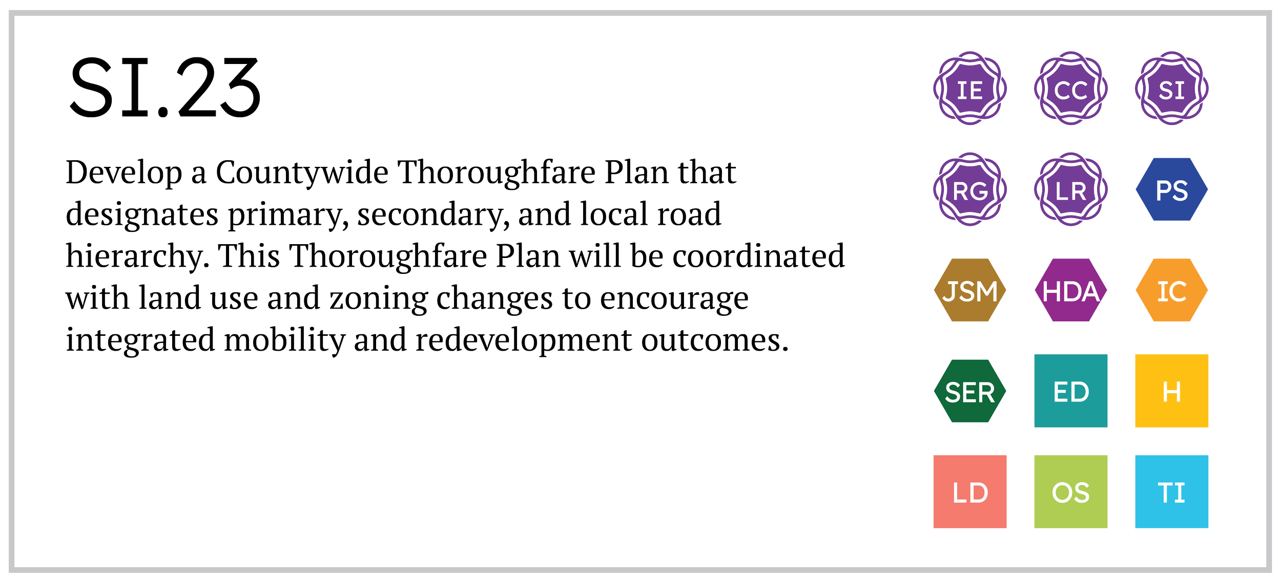 Below are the most transformative recommendations that address all of the five key issues. The cards show how intertwined the various policy buckets, key issues, and planning topics are. These are the first policies that the County is looking to to inform the prioritization and allocation of resources.